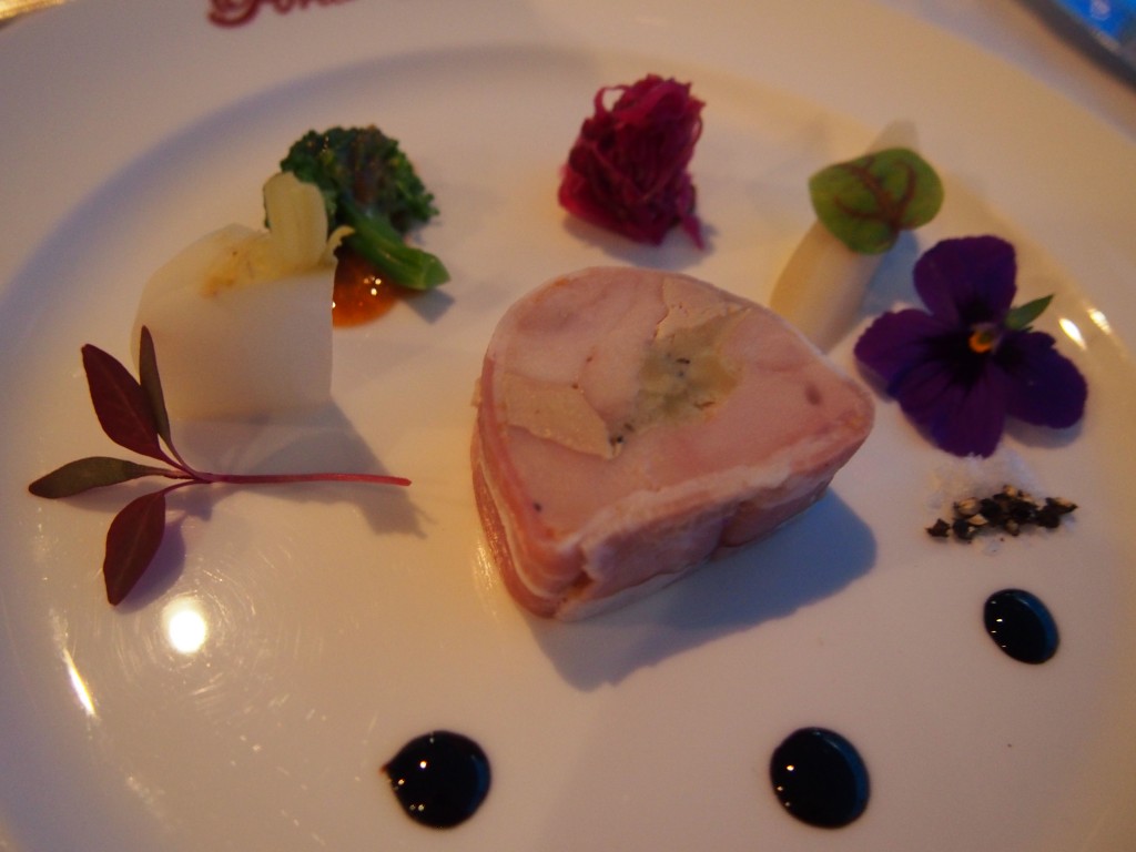 フランス産ホロホロ鶏のテリーヌ、季節野菜のマリネ添え(嫁さん用の前菜)