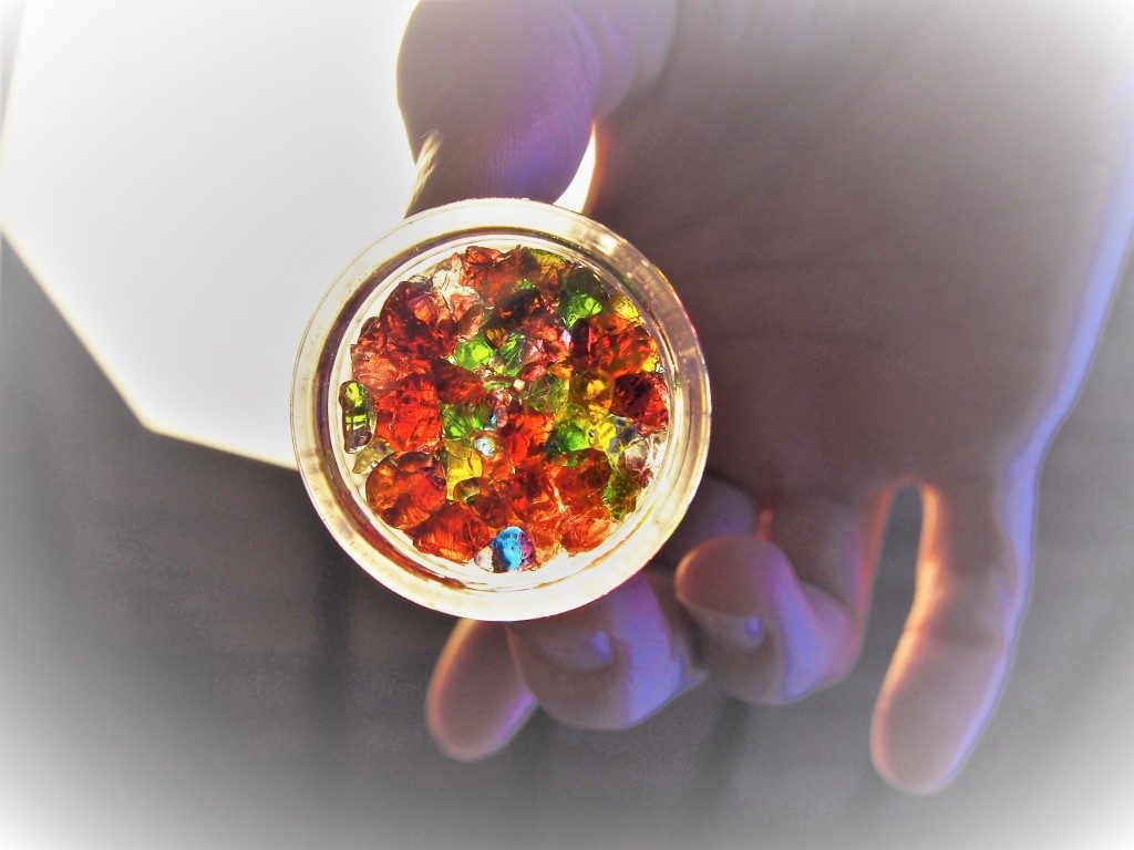 小さな容器に薩摩切子のカケラをいれます。