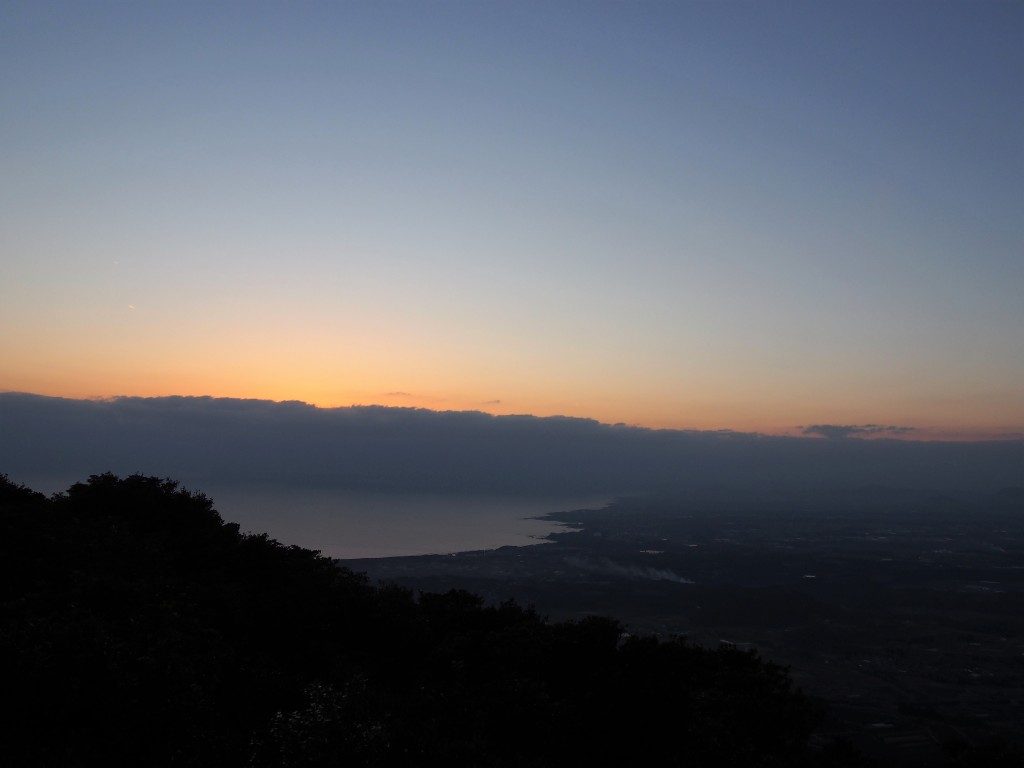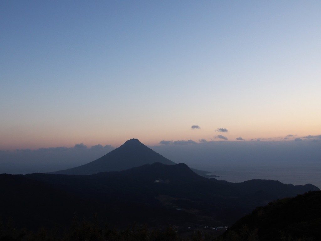 朝に大野岳の山頂から撮影した開聞岳の様子です。